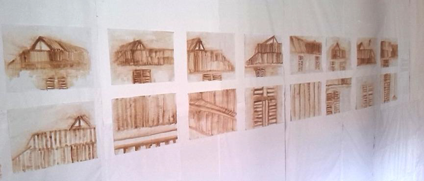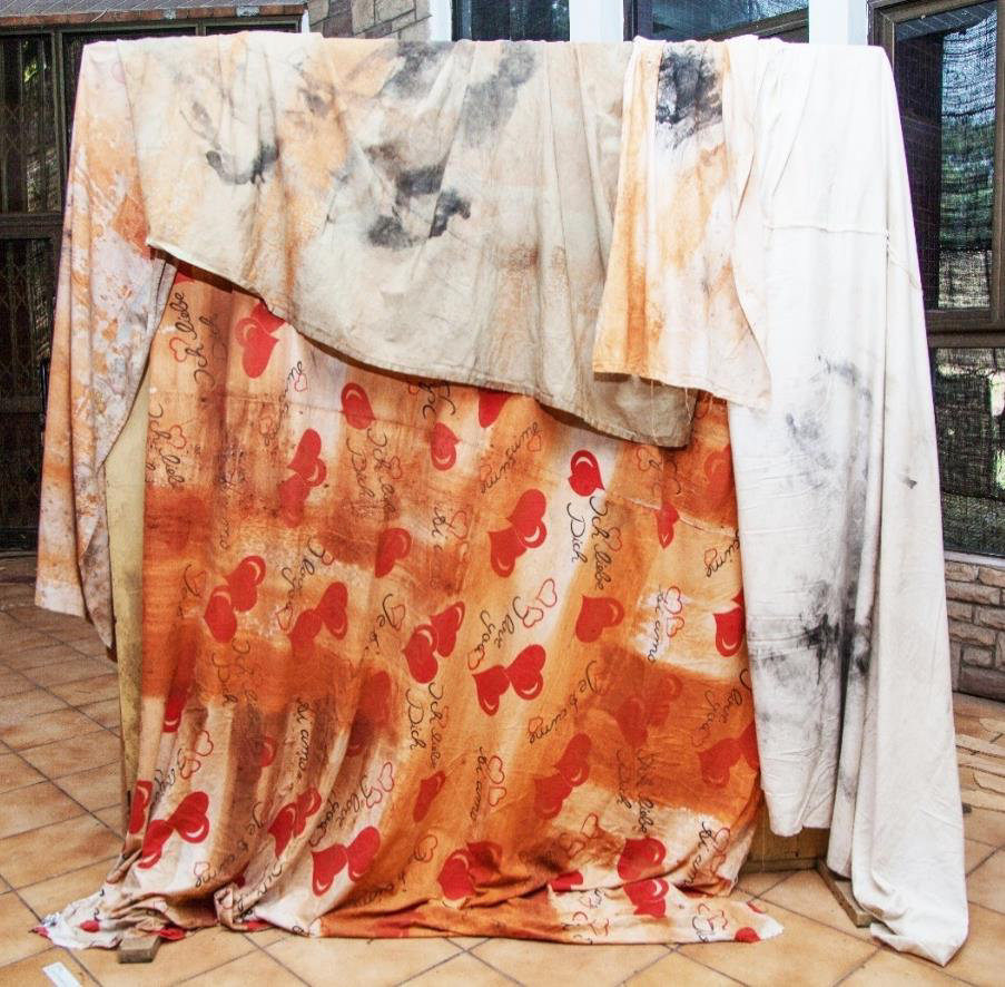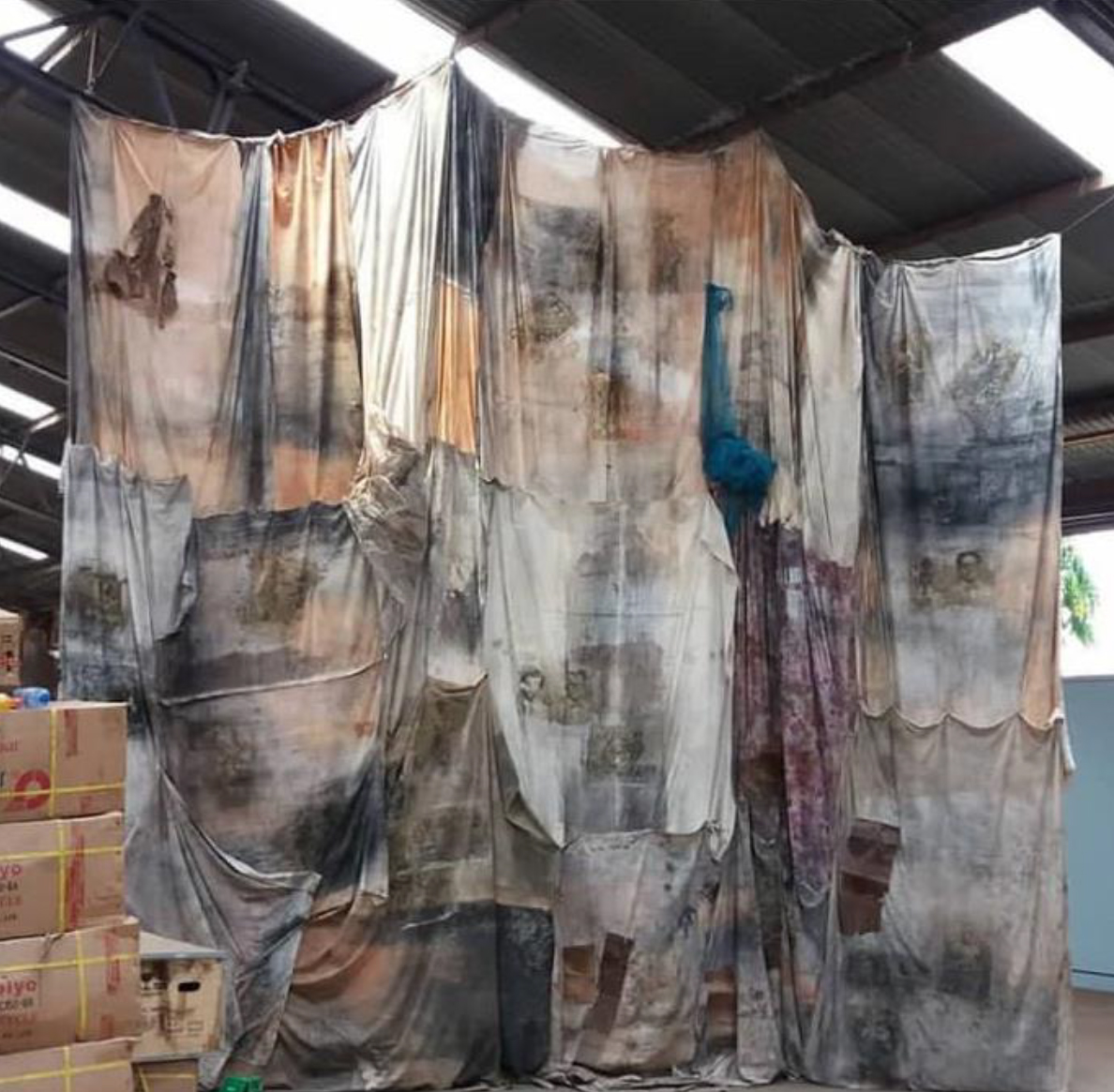 The Noisy Wall I (2017). (Detail). Assorted clays, newspaper cutting, cassava starch, manganese dioxide, gum-Arabic on fabric. Dimension varies The Noisy Wall I (2017). (Detail). Assorted clays, newspaper cutting, cassava starch, manganese dioxide, gum-Arabic on fabric. Dimension varies The Noisy Wall I (2017). (Detail). Assorted clays, plastics, cassava starch, manganese dioxide, gum-Arabic on fabric. Dimension varies The Noisy Wall I (2017). (Detail). Assorted clays, rusted roofing sheet, cassava starch, manganese dioxide, gum-Arabic on fabric. Dimension varies The Noisy Wall I (2017). (Detail). Assorted clays, cassava starch, manganese dioxide, gum-Arabic on fabric. Dimension varies The Noisy Wall I (2017). (Detail). Assorted clays, newspaper cutting, cassava starch, manganese dioxide, gum-Arabic on fabric. Dimension varies The Noisy Wall Series II (2018). Installation on vehicles. Dimension varies The Noisy Wall Series II (2018). Installation of artwork from ceiling to floor. Dimension varies The Noisy Wall Series II (2018). Installation view, Assorted clays, cassava starch, manganese dioxide, gum-Arabic on fabric… Untitled (2017) (Detail). Assorted clays, cassava starch, on wax print cloth. The Noisy Wall I (2017). (Detail). Assorted clays, cassava starch, manganese dioxide, gum-Arabic on fabric. Dimension varies The Noisy Wall I (2017). (Detail). Assorted clays, cassava starch, manganese dioxide, gum-Arabic on fabric. Dimension varies The Noisy Wall I (2017). (Detail). Assorted clays, newspaper cutting, cassava starch, manganese dioxide, gum-Arabic on fabric… The Noisy Wall Series II (2018). Installation view, Assorted clays, cassava starch, manganese dioxide, gum-Arabic on fabric… Piece of Auntie Peace (2018). Installation view. Dimension varies Untitled (2014) (Detail). Assorted clays, cassava starch, on fabric Untitled (2014) (Detail). Assorted clays, cassava starch, on fabric Untitled (2014) (Detail). Assorted clays, cassava starch, on fabric… Watercolour painting (2014) on newsprint. 21cm x 29.7cm Watercolour painting (2014) on newsprint. 21cm x 29.7cm Untitled (2014). Installation view, Assorted clays, cassava starch, on fabric..